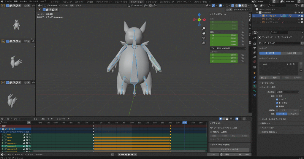 そして一応アニメーションは歩くところまでは出来たんですけどもうちょっと弄って遊びたいんで明日も遊びます