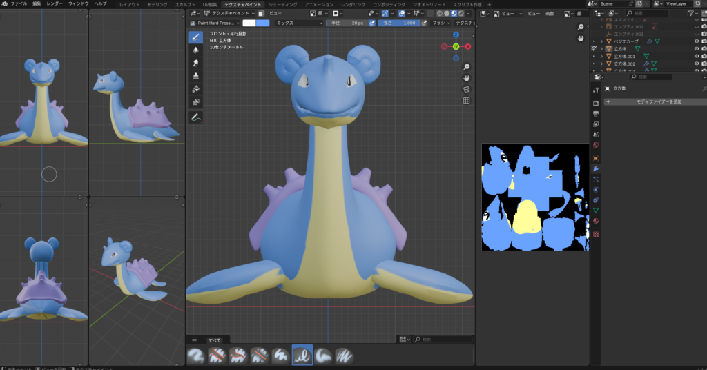 前回のポッチャマで色塗った時のことは全部忘れてまた最初から覚え直してます