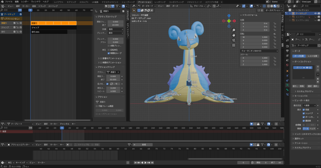 次は2足歩行のキャラでNLA使って歩かせたり色々させたいなぁ✨